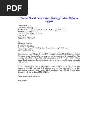 Contoh surat penawaran barang produk negosiasi makanan harga ruangguruku com 16 contoh surat balasan penawaran penelitian pemesanan contoh . Dengan rincian pesanan barang sebagai Contoh surat balasan penawaran untuk pembelian alat alat kantor. Ada banyak contoh surat penawaran barang yang bisa anda tiru. Manajer pemasaran pt jaya raya .